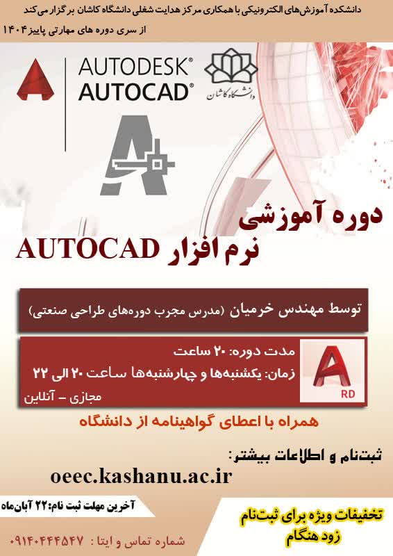 برگزاری دوره های مهارت افزایی ۳۰ مهر ۱۴۰۴ | ۱۷:۱۱ کد : ۲۶۴۰۹ اخبار و رویدادها ارسال به دیگران نام شما ایمیل شما ایمیل دریافتکننده ارسال انصراف تعداد بازدید:۳۳۱ مرکز هدایت شغلی دانشگاه کاشان با همکاری دانشکده آموزشهای الکترونیکی و آزاد، دوره های مهارت افزایی همچون دوره های نرم افزار، بازار کار، فناوری نوین و .... را برگزار می کند. لینک ثبت نام